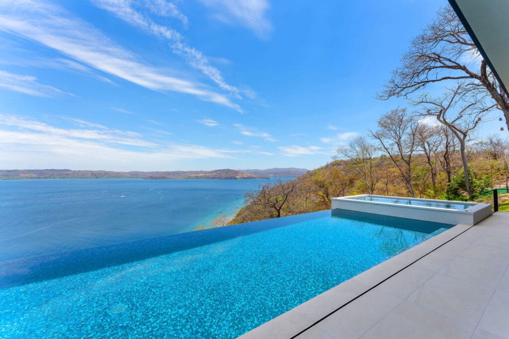 The villa’s infinity pool blends seamlessly with the Pacific horizon, offering breathtaking sunrises. It is complemented by a luxurious jacuzzi, creating the perfect setting for serene relaxation at any hour.